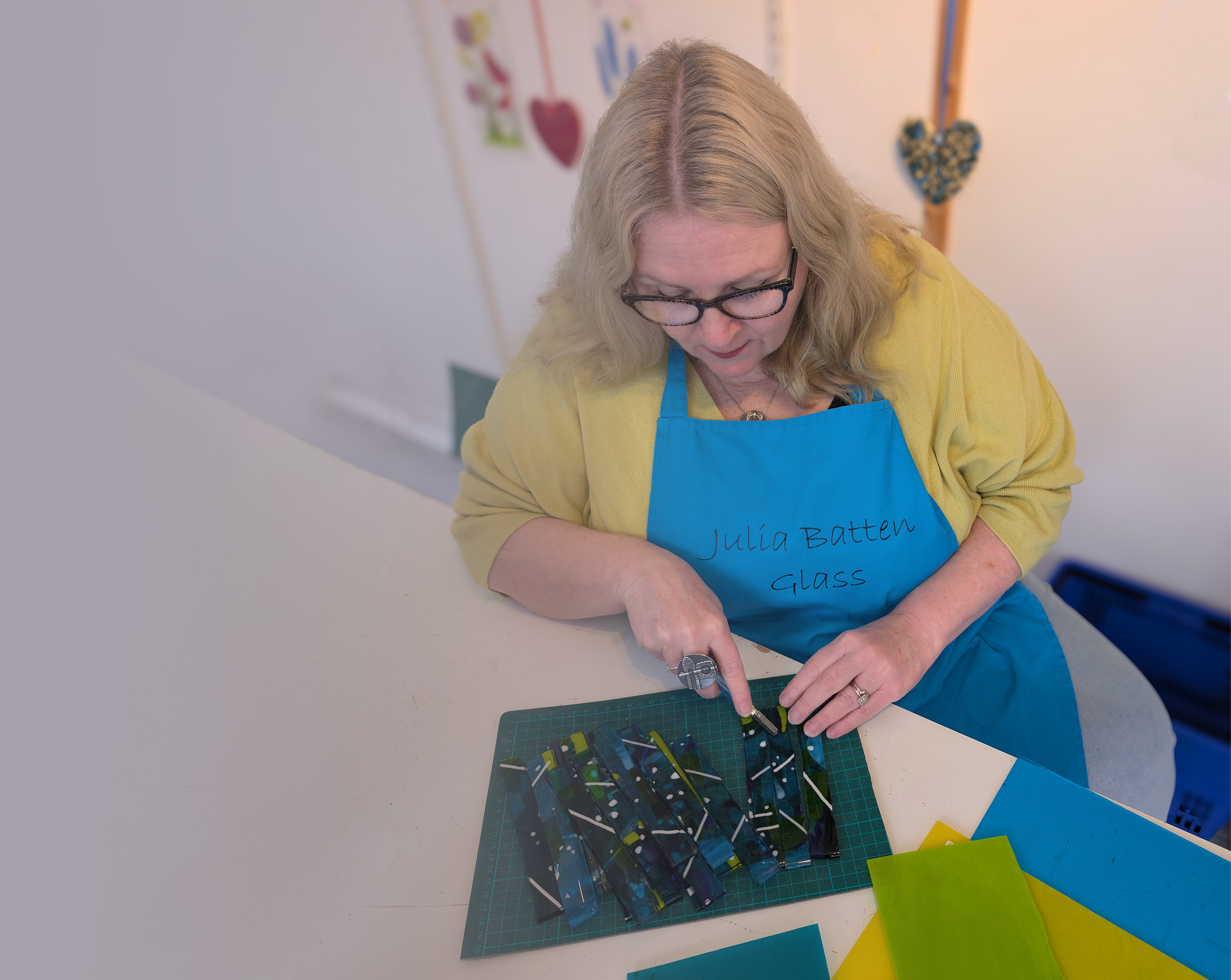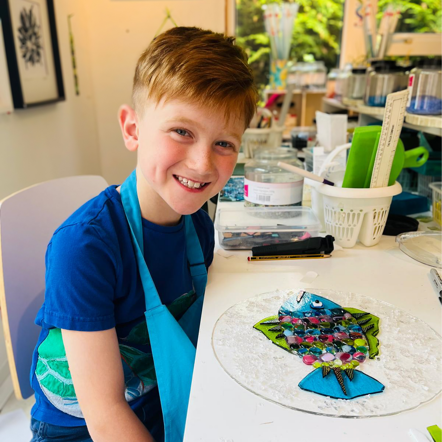 Julia’s workshops are really well organised, she goes through all the safety advice with you, how to use the tools and handle the glass. But best of all it’s great fun! You can let your imagination go wild with the amazing range of coloured glass to choose from!