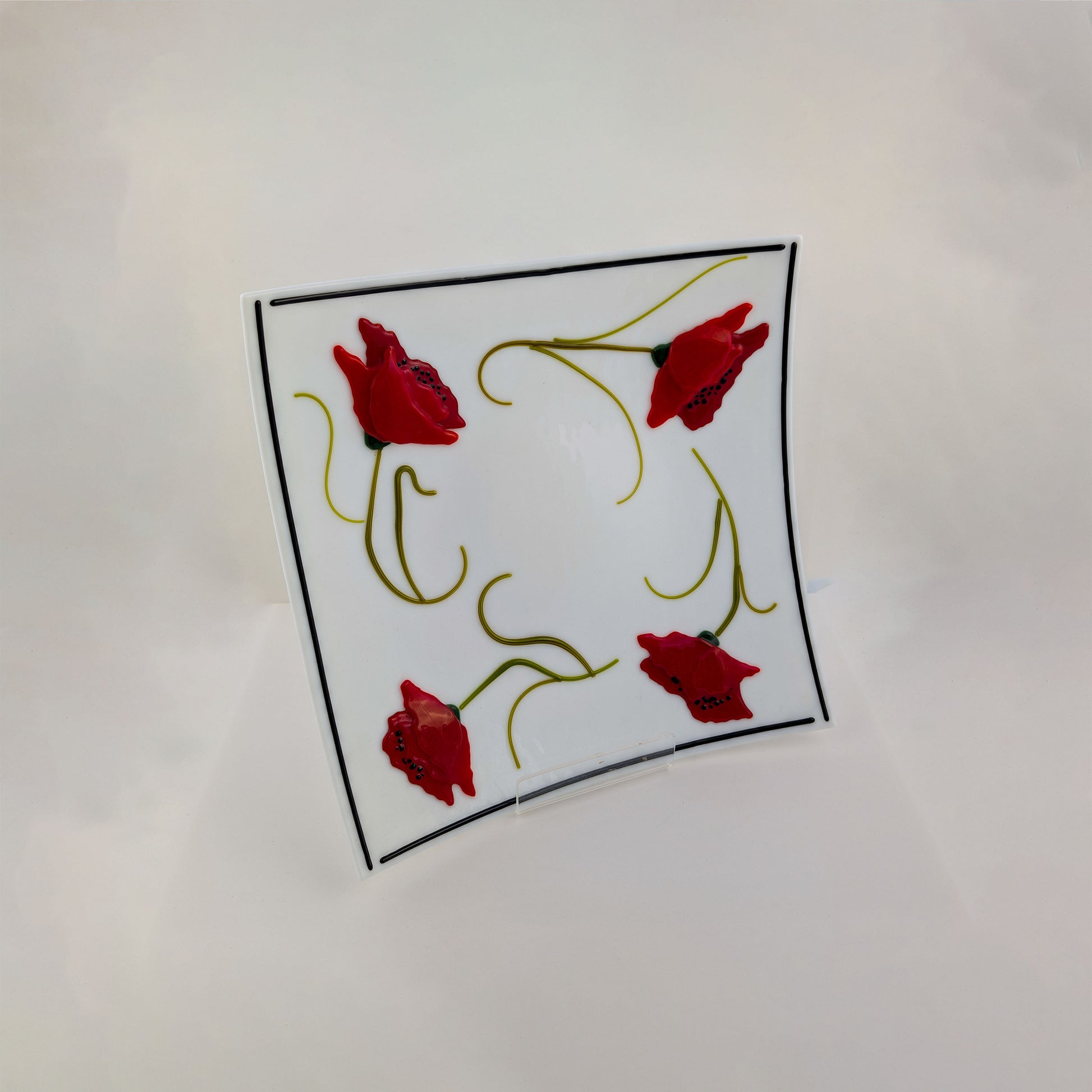 Poppies Platter on White Glass